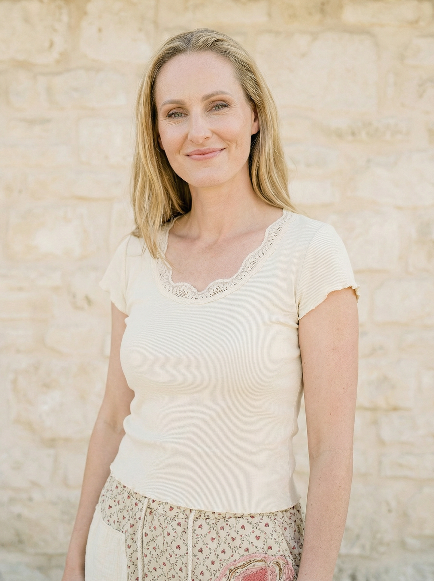 Sweetheart Lace Tee - Cream