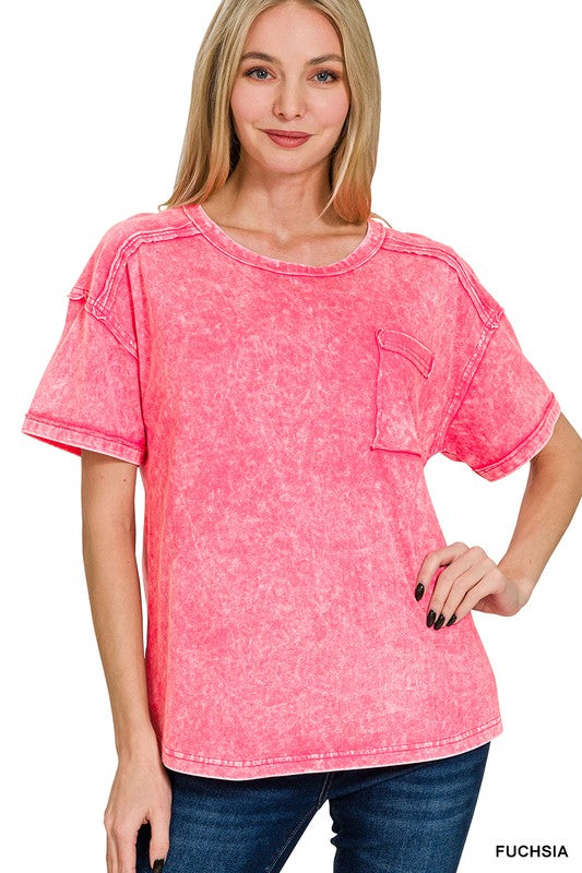 ACID WASHED ROUND NECK T-SHIRTS -RELAX FIT **Each item is unique, expect variations in color and finishing TOTAL BODY LENGTH: 25", BUST: 40" approx. - MEASURED FROM SMALL * COLOR MAY VARY SLIGHTLY DUE TO MONITOR RESOLUTION