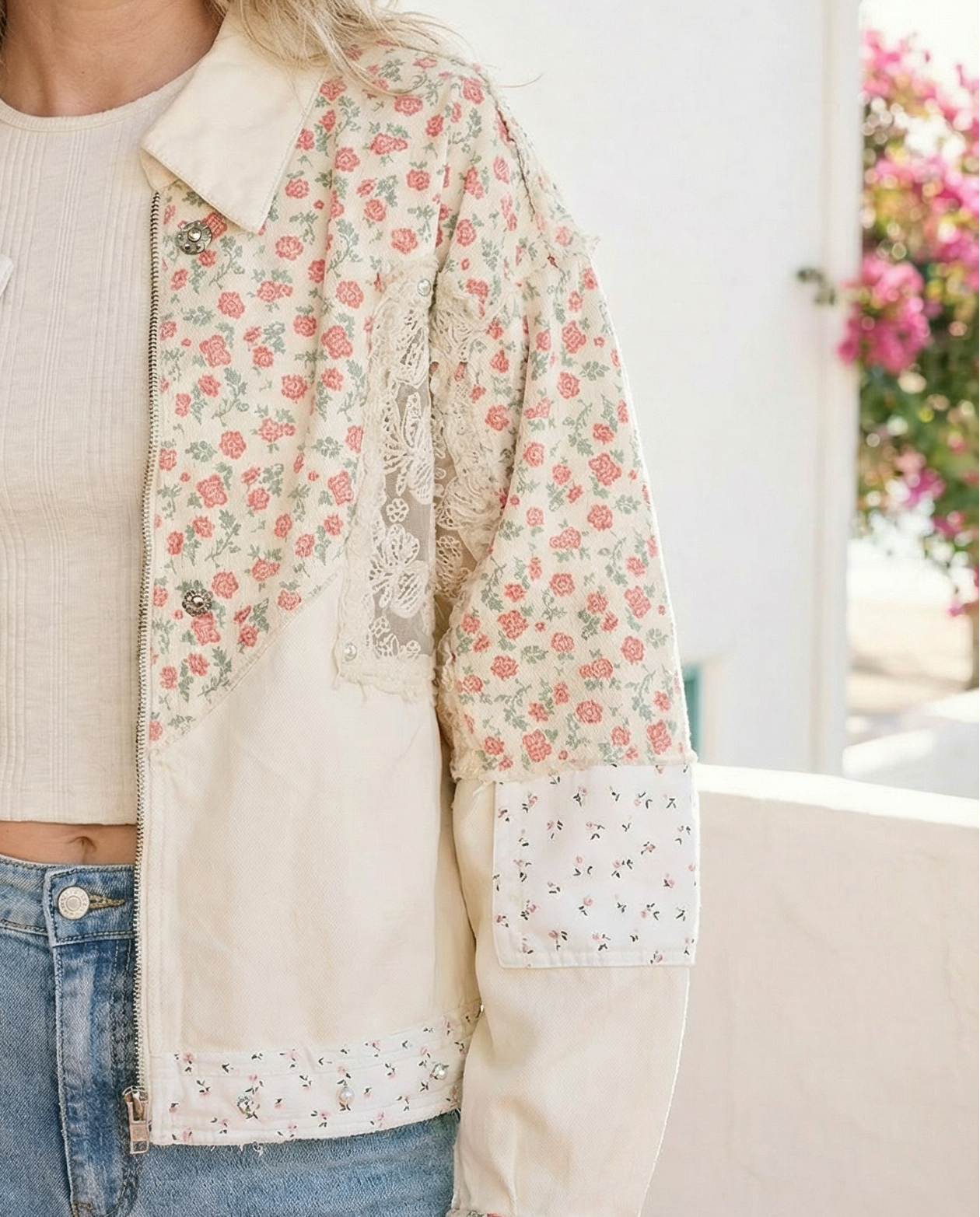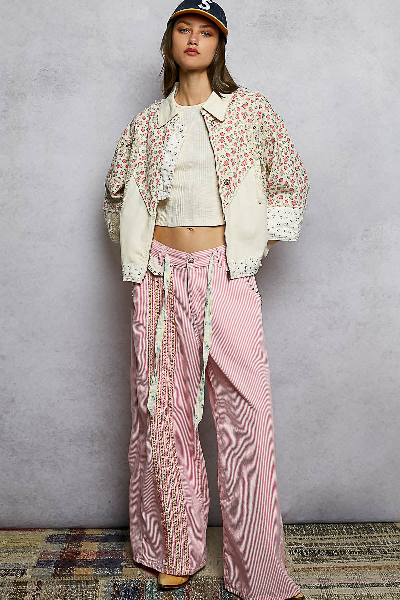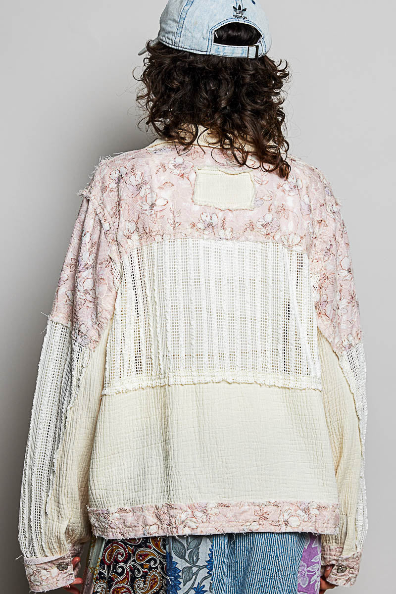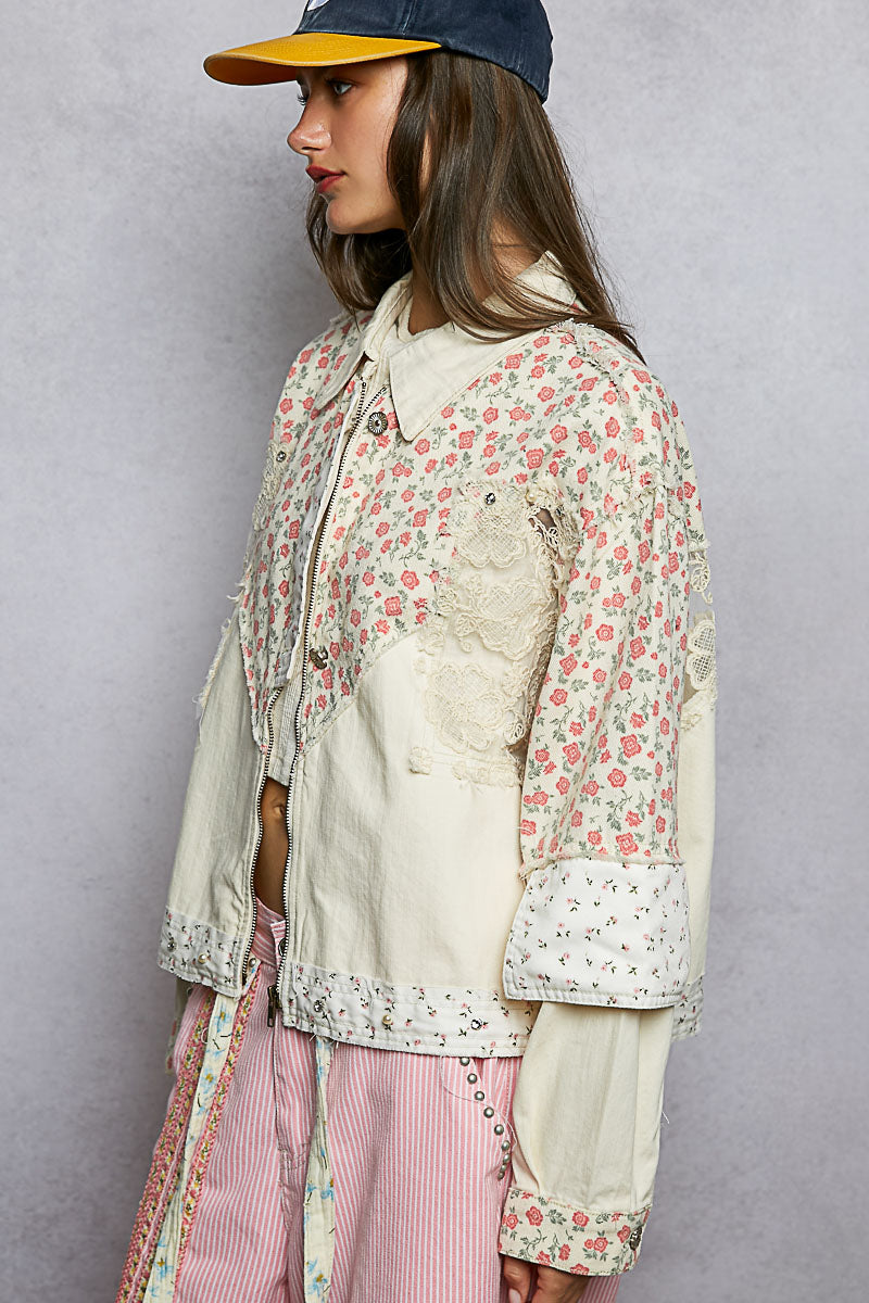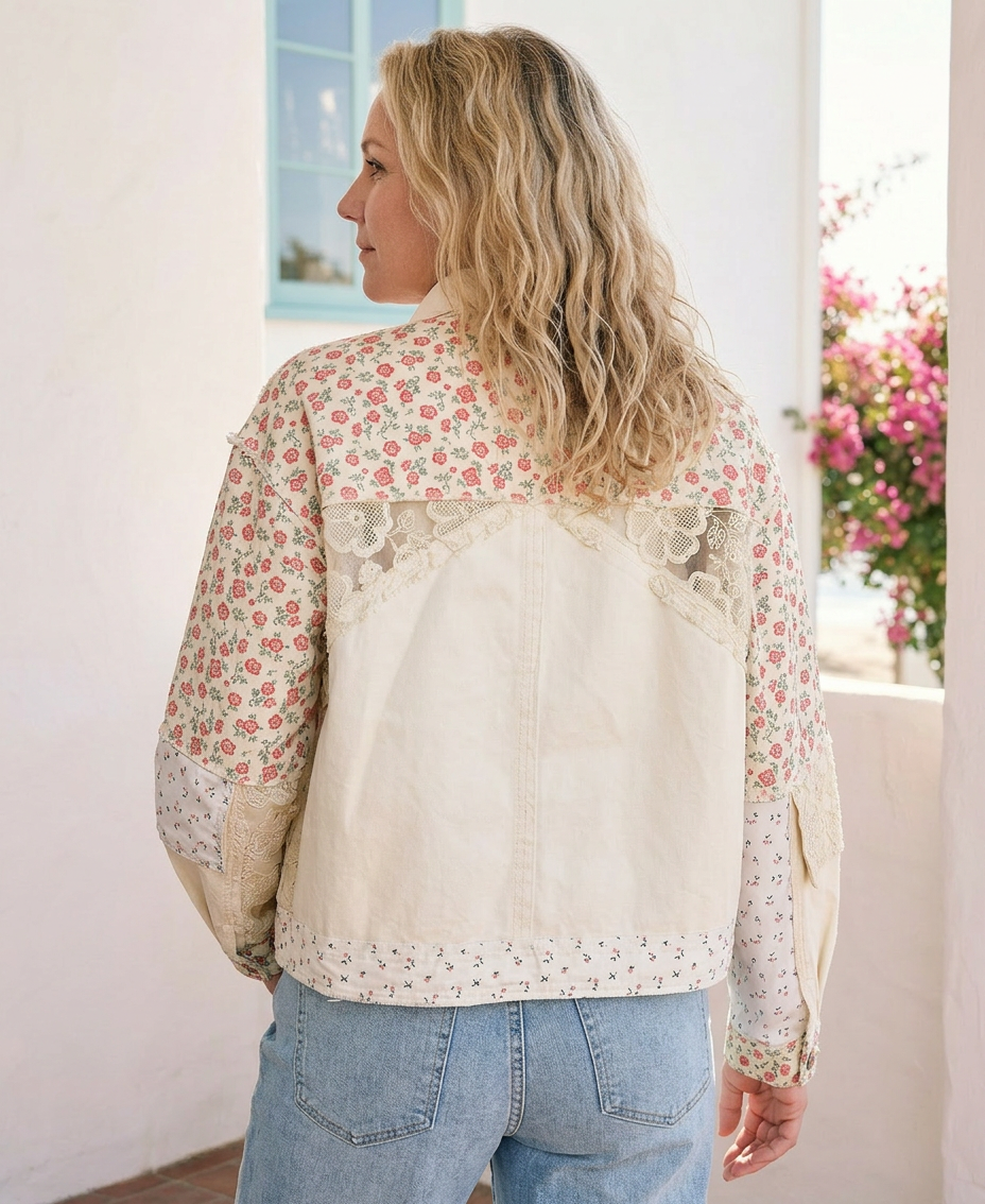 Effortlessly chic and undeniably versatile, the Celeste Floral & Lace Shacket combines romantic florals with delicate crochet detailing for a look that transitions seamlessly from casual to polished. The relaxed, roomy fit ensures all-day comfort, while studded accents and functional pocket flaps add modern edge. Crafted from 100% cotton twill, this long-sleeve layer is perfect for spring styling—wear it open over dresses, tees, or tanks for instant dimension and texture.
