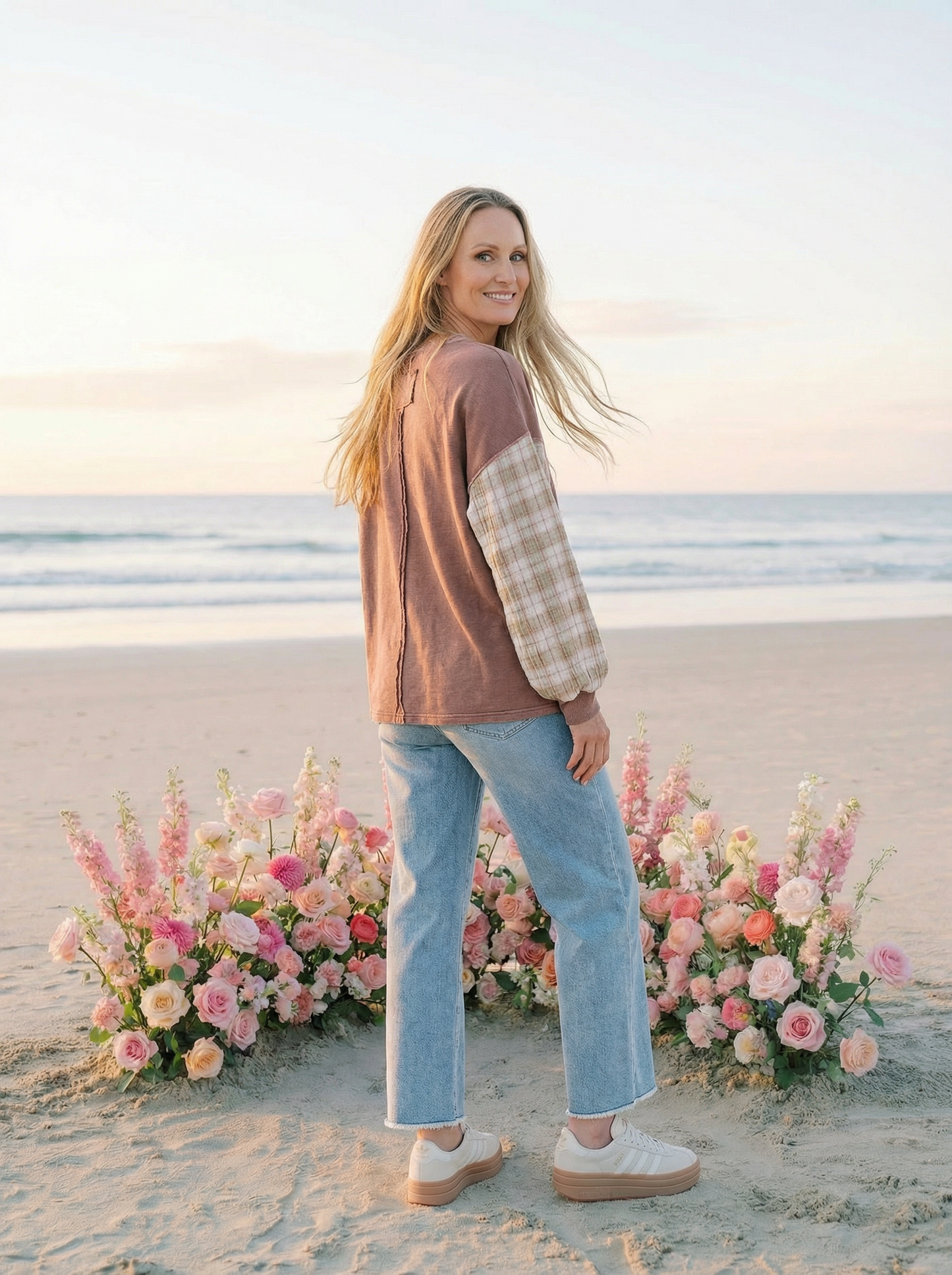 Designed with a relaxed silhouette, ribbed neckline, cuffs, and hem, it’s the kind of throw-on-and-go piece that still feels thoughtfully styled. Feminine, playful, and full of charm — this one instantly elevates your everyday denim.
