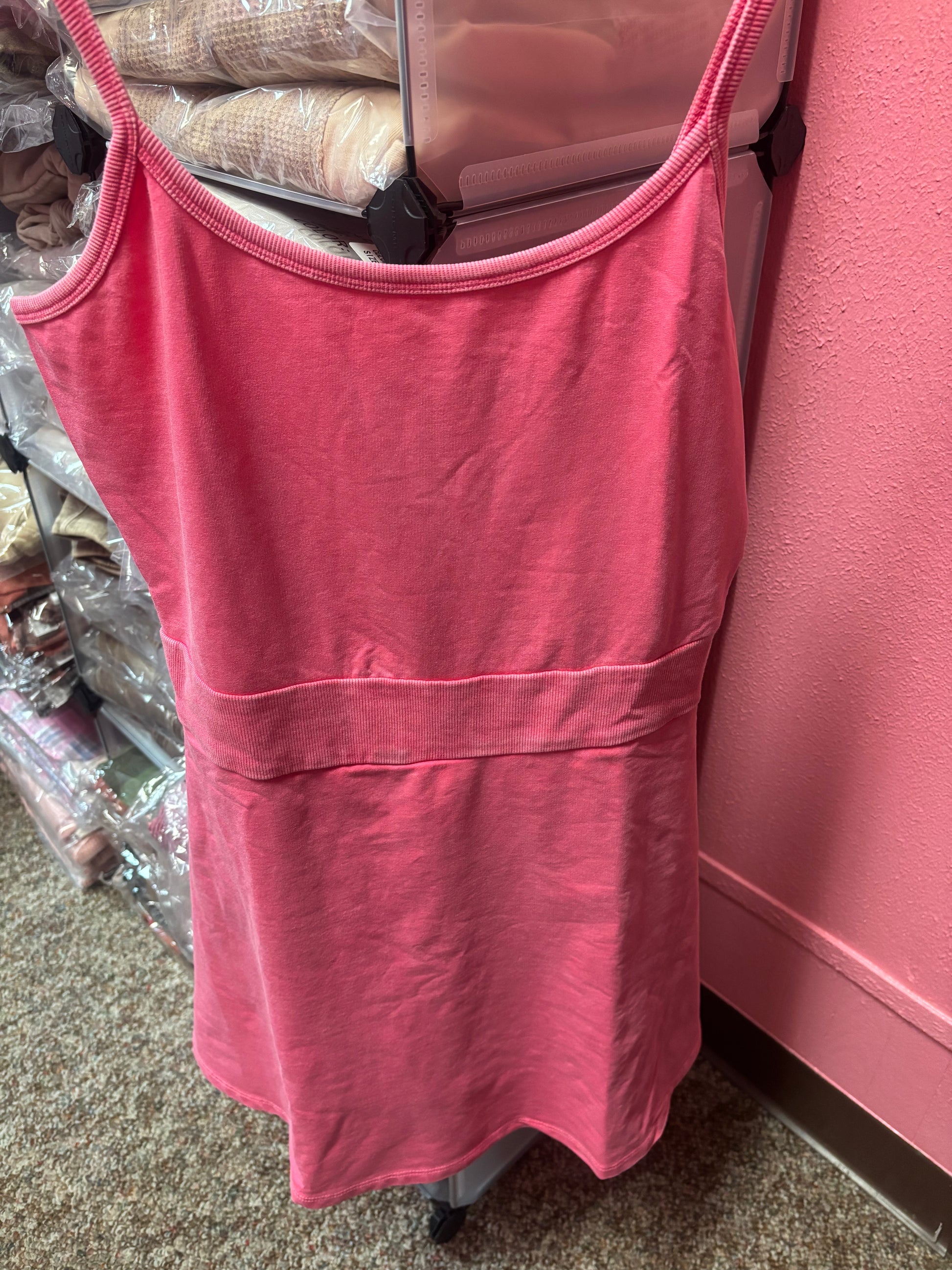 Mineral wash cami dress made of a lightweight, breathable fabric with built-in shorts and a ribbed contrast. HPS S: 29" M: 30" L: 31"