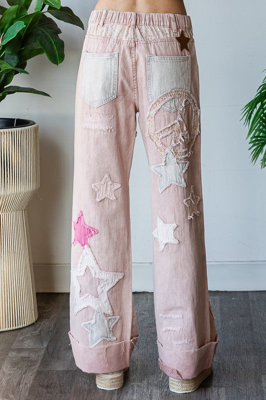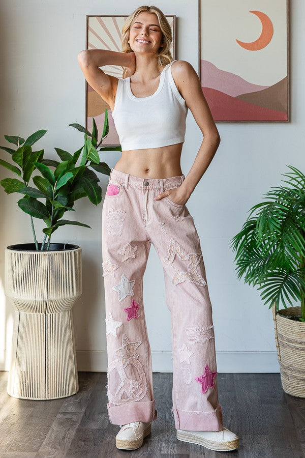 Pink Star Patchwork Jeans
