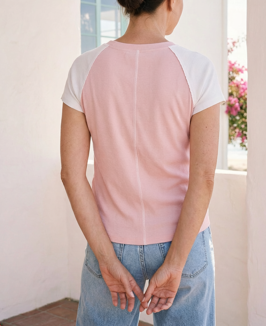 Ribbed Colorblock Tee - Blush Pink