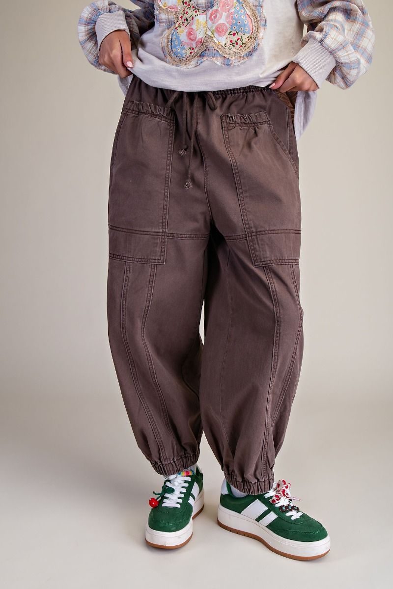 Easy, relaxed, and made for everyday comfort — the Sunday Cargo Pants bring together soft washed twill and a laid-back utility feel. Designed with a baggy fit, tapered legs, and bold patch pockets, they strike the perfect balance between effortless and put-together. Contrast stitching adds subtle shape, while the elastic drawstring waistband keeps them comfy from morning errands to slow weekend lounging. These are the kind of pants you’ll want to live in.